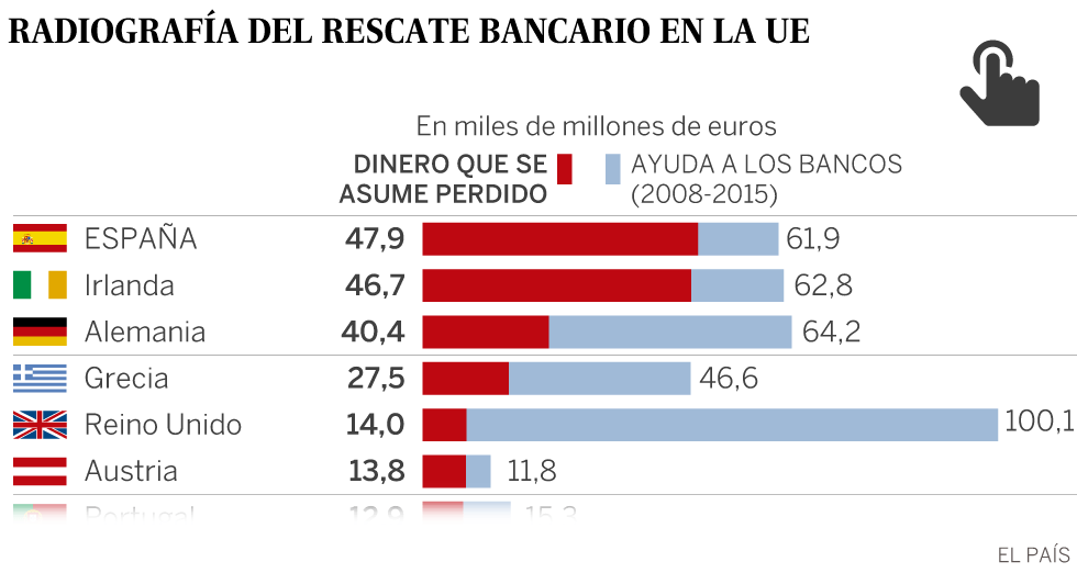 - Cuando la gente se queja de lo que se paga de impuestos en España habrá que recordarle que una enorme parte del déficit acumulado corresponde a la brutal cantidad de dinero aportado POR TODOS NOSOTROS al rescate bancario y que como se puede ver en algunos de los cuadros siguientes gran parte de ese dinero jamás será recuperado